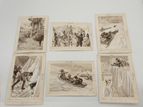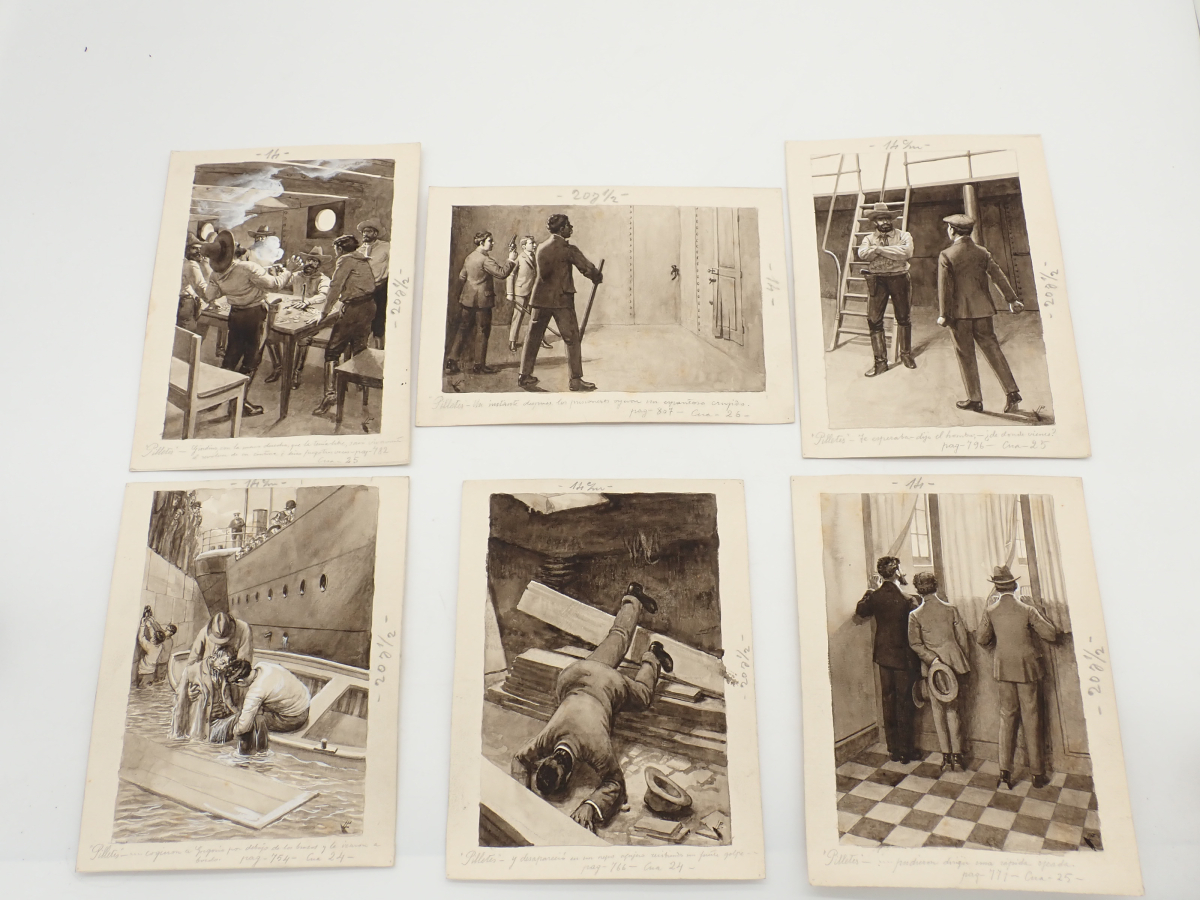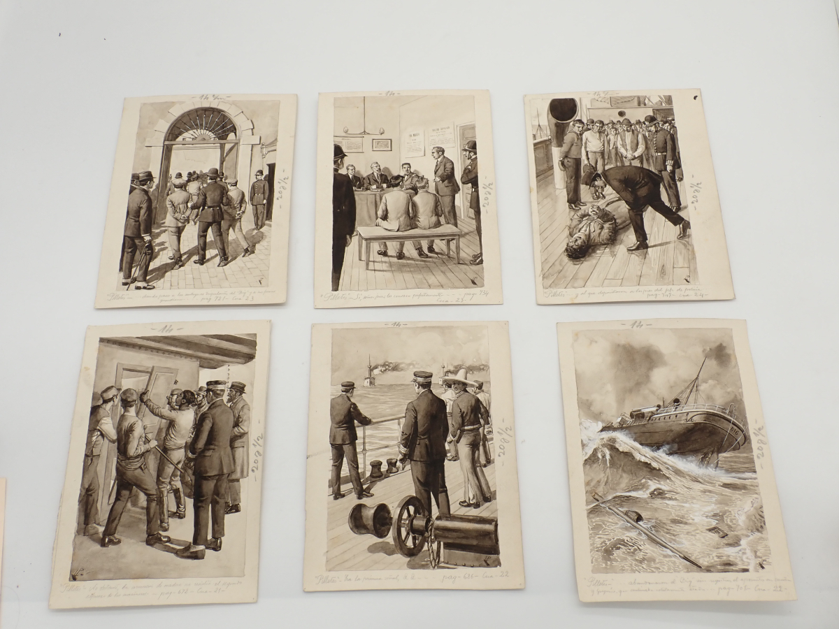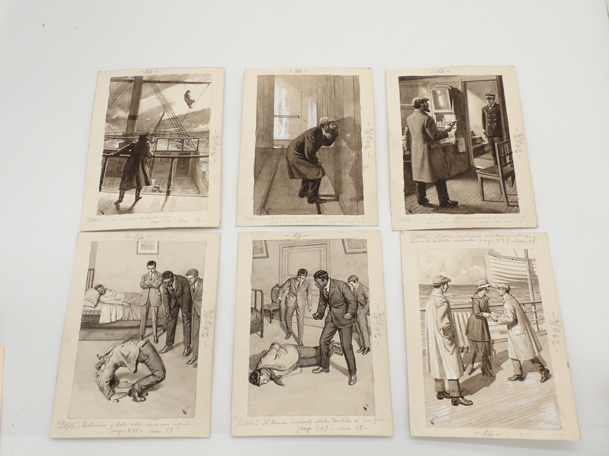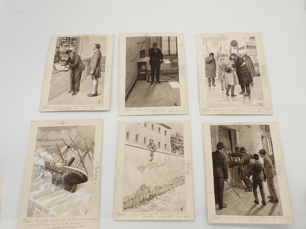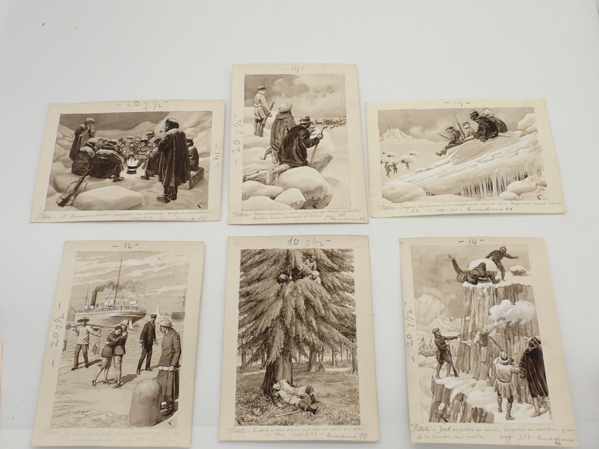 134 acuarelas originales de Luis Palao para la obra "La vuelta al mundo de dos pilletes", editada por la editorial Sopena en los años 20