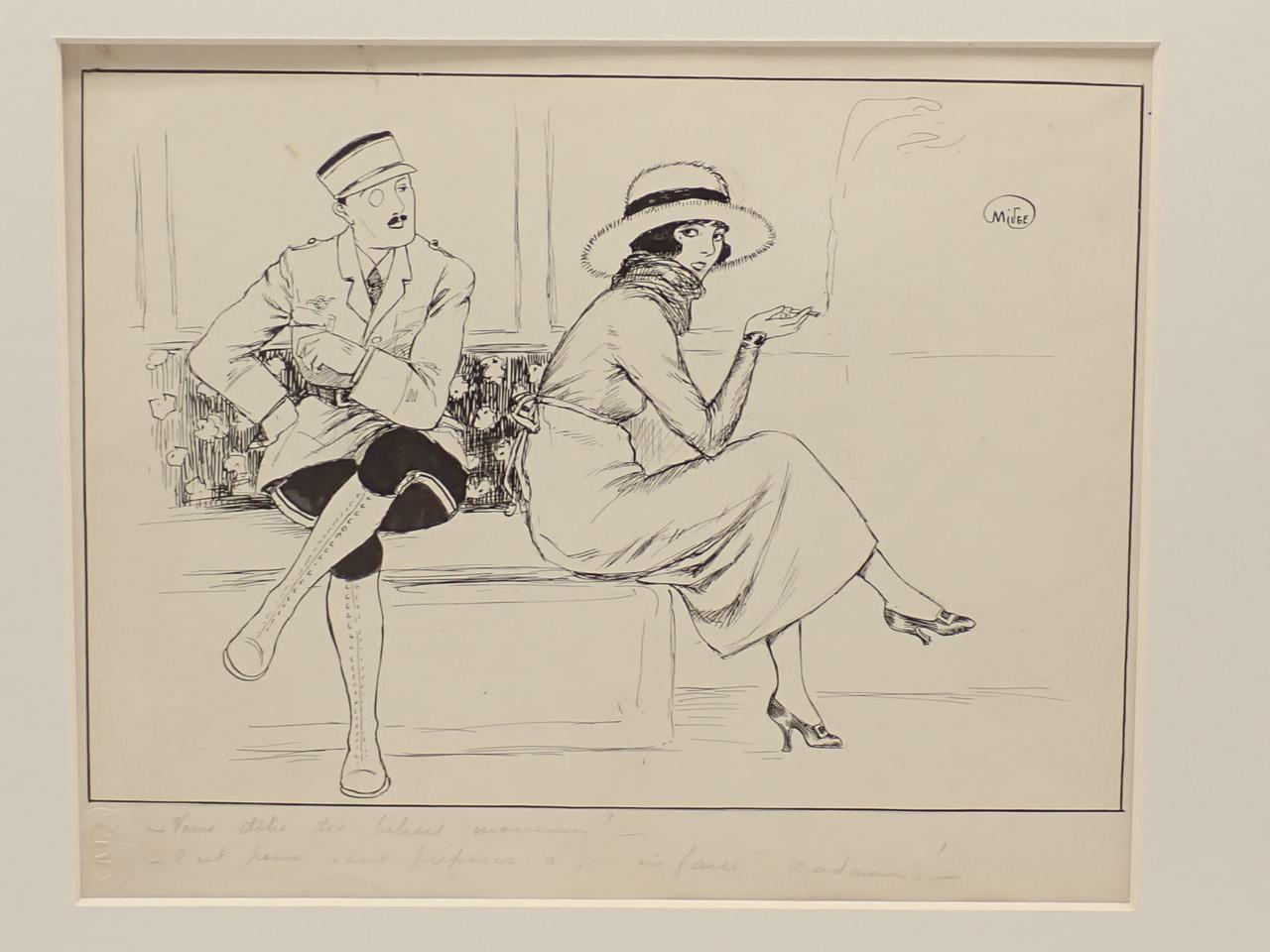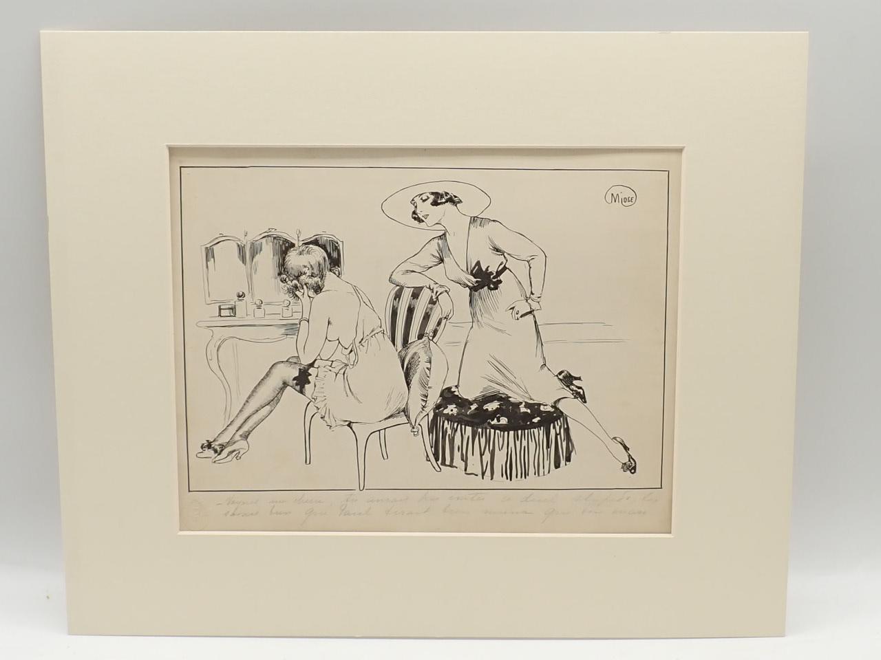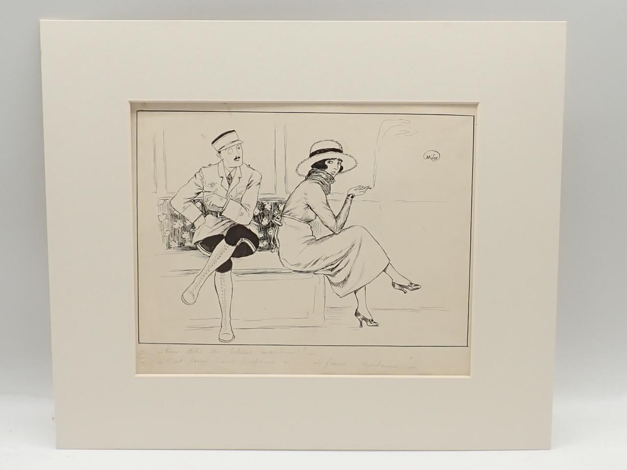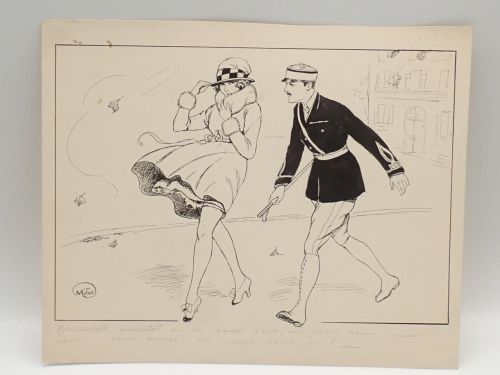 4 dibujos satíricos originales para ser publicados en revistas francesas