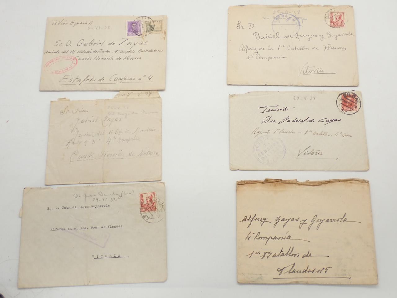 9 cartas dirigidas a Gabriel Zayas Goyarrola, del Primer Batallón de Flandes, Cuarta División de Navarra, durante la guerra civil