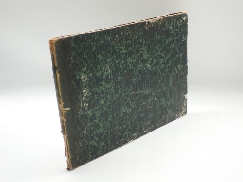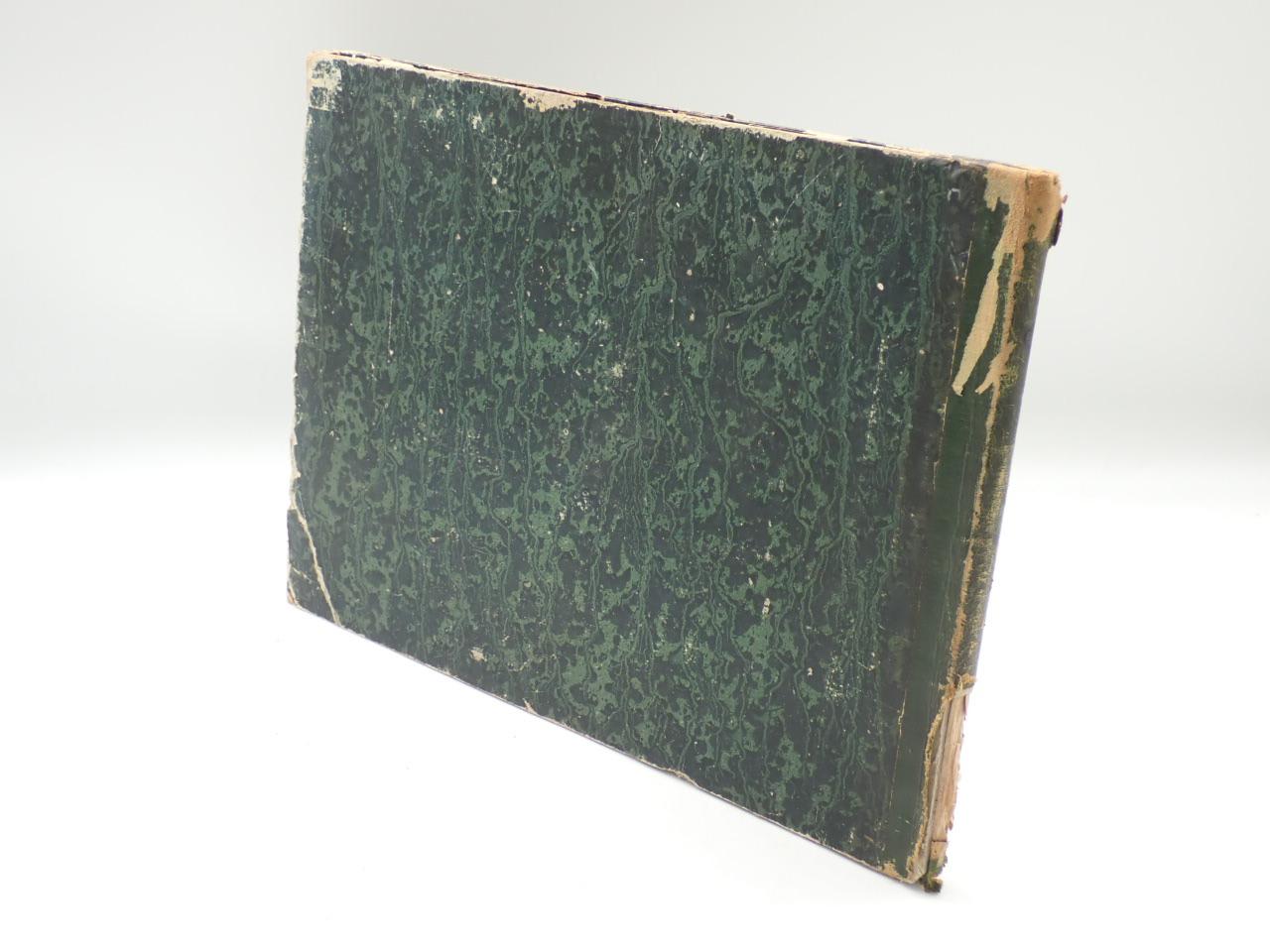 Folio apaisado, holandesa piel muy rozada y con pérdidas en lomo, conserva rústica original. Portada + 17 láminas litográficas.