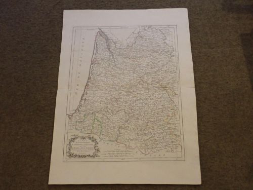 Carte du Gouvernement de Guienne et Gascogne, avec celui de Bearn et Basse Navarre. Projettée et assujettieé au Ciel par M. Bonne [MAPA GRABADO E ILUMINADO]