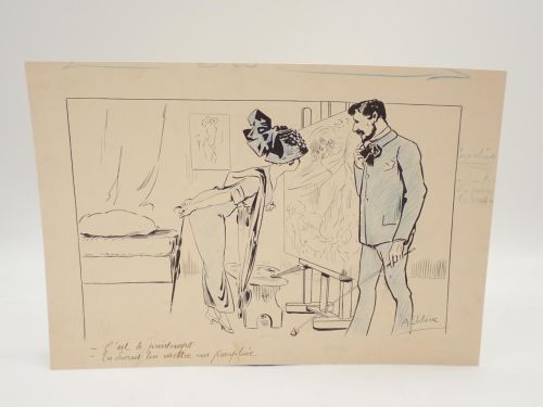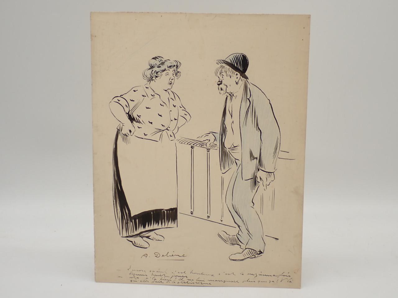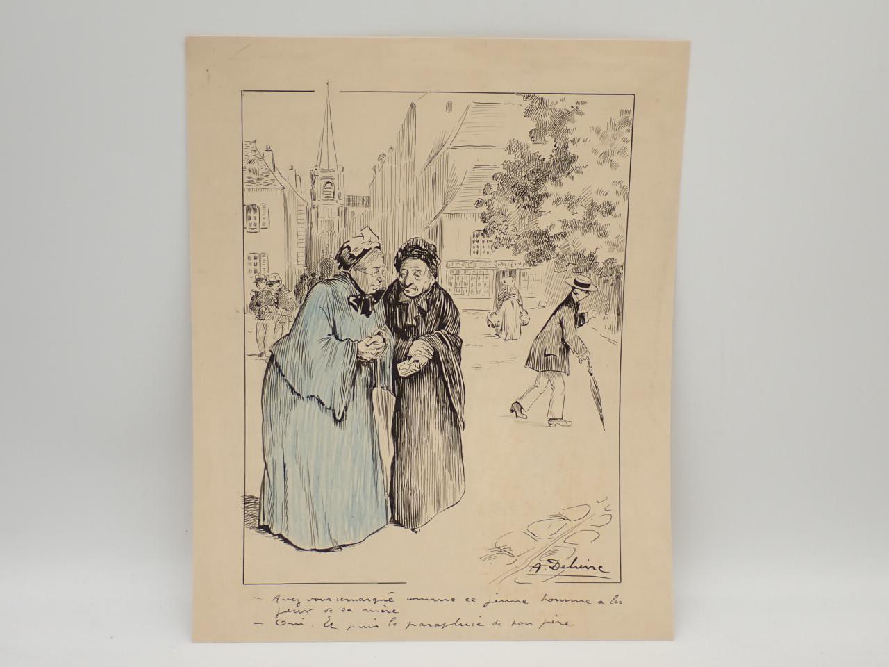 Conjunto de 4 dibujos originales de Auguste Delierre para ser publicados en revistas francesas