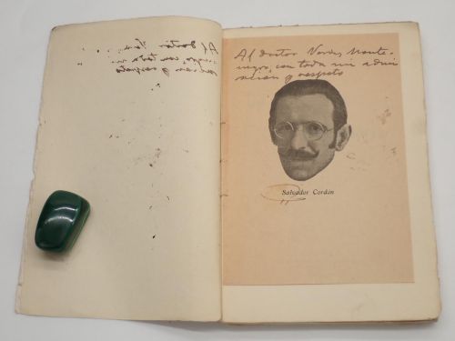 Retrato del autor y dedicatoria del mismo "Al doctor Verdes Montenegro"