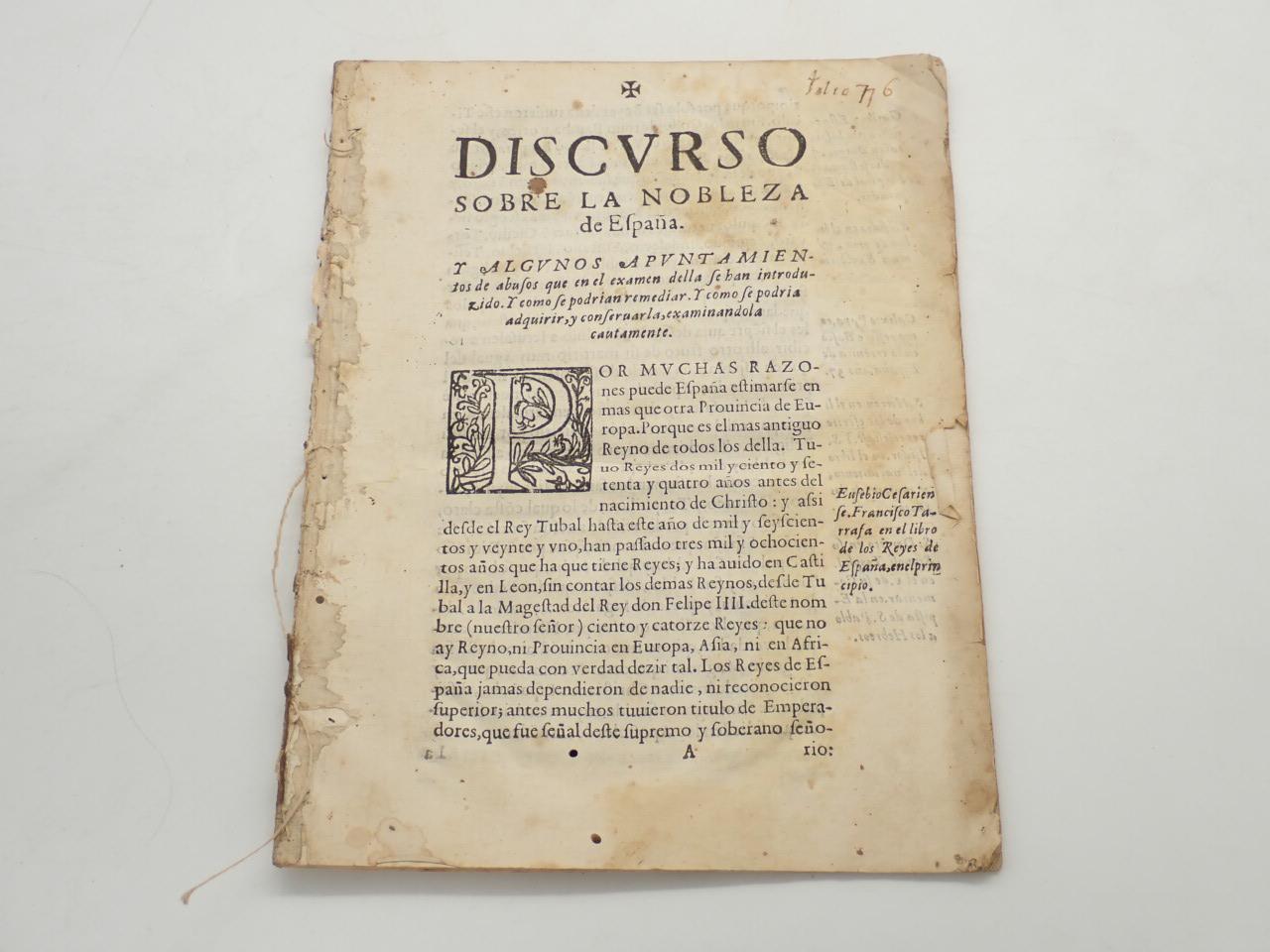 Discurso sobre la nobleza de España. Y algunos apuntamientos de abusos que en el examen della se han introducido. Y cómo se podrían remediar. Y cómo se podría adquirir, y conservar, examinándola cautamente
