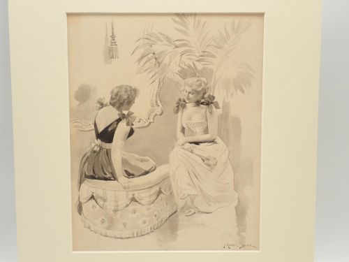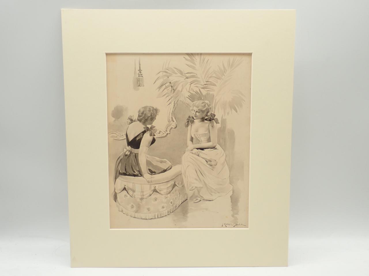 DOS DAMAS. Dibujo original de Francisco Gómez Soler
