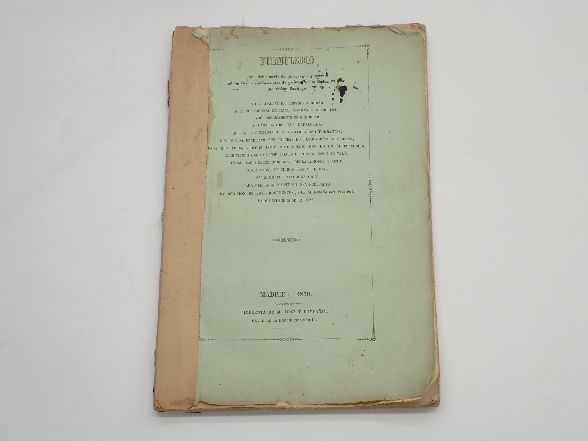 Formulario que debe servir de guía, regla y norma a los Señores informantes de pruebas de la Orden Militar del Señor Santiago; y el cual se ha servido aprobar S.A. el Tribunal Especial, mandando se imprima,...