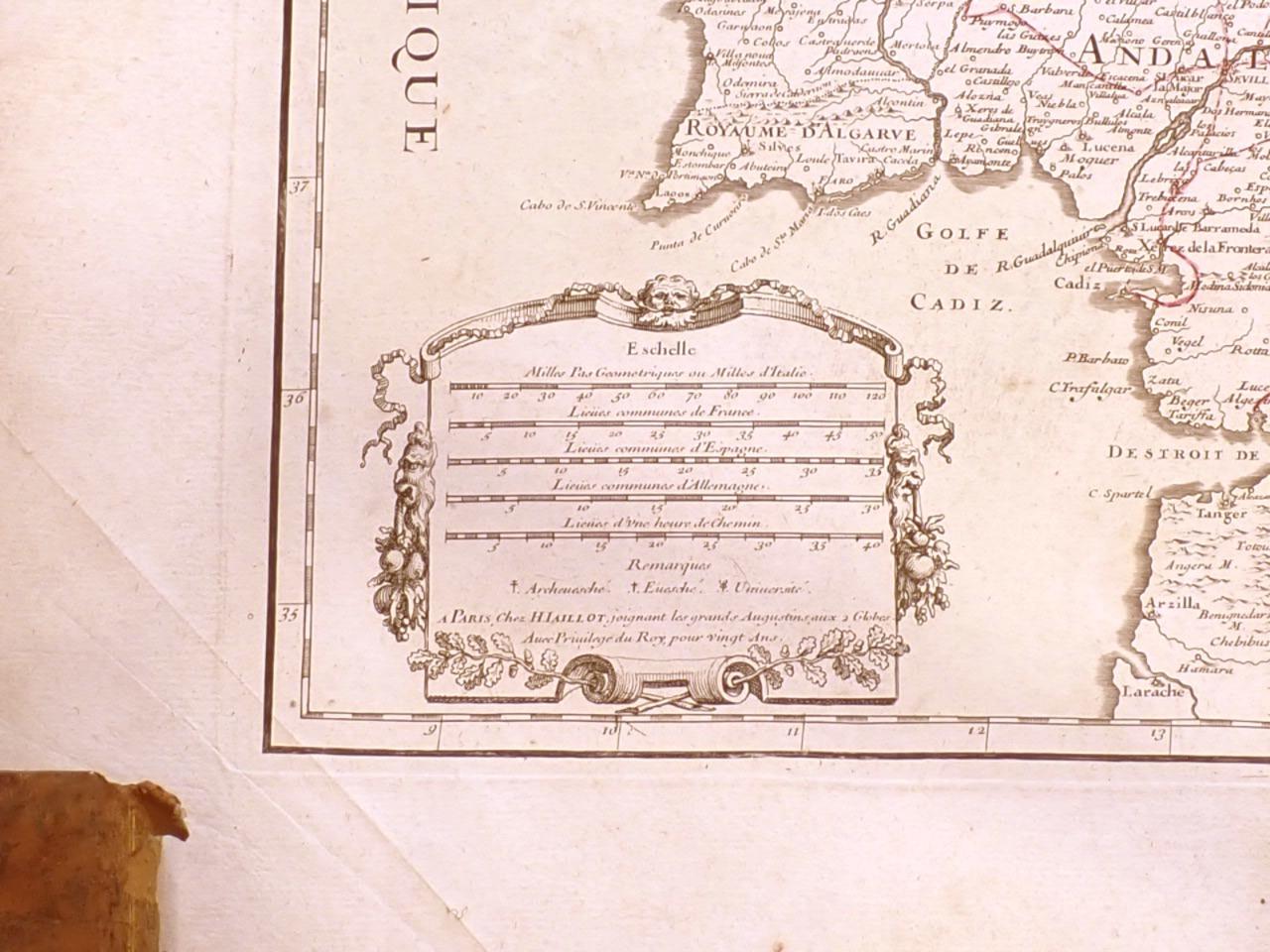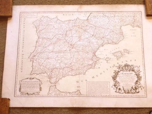 L'Espagne divisée en tous ses royaumes et principautés. Oú sont exactement recueillies et obervées toutes les Routes des Postes d'Espagne, sur les memoires des Courriers Majors de Madrid. Par ordre de Son Excellence Monseigneur le Marquis de Grimaldo Ministre et Secretaire d'Etat de sa Majesté Catholique [MAPA GRABADO]