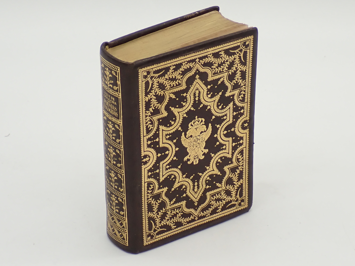 12º, XXXVI+216 p. Bonita encuadernación editorial en piel con decoración dorada en planos y lomo, algo rozada, corte superior dorado; RASGADURA CON PÉRDIDA EN PUNTA INFERIOR DE PLANO POSTERIOR.