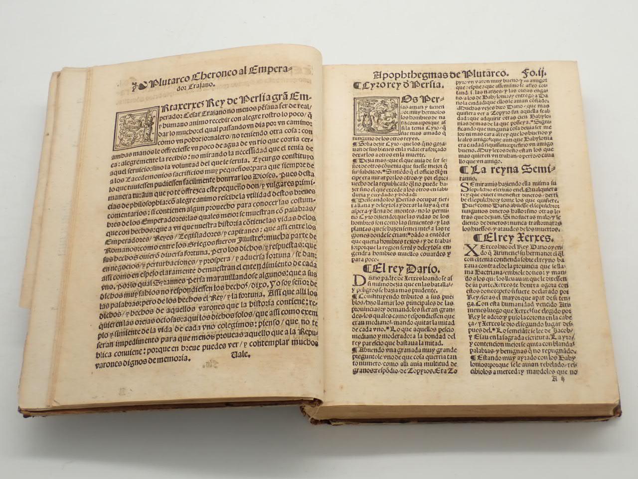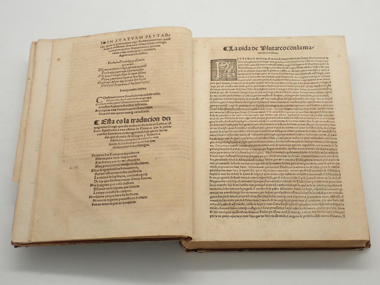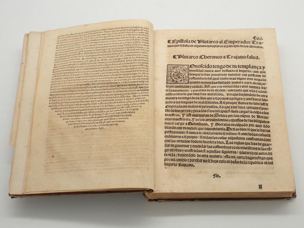 Morales de Plutarco. Traduzidos de lengua griega en castellana. Alcalá de Henares, Juan de Brocar, 1548 [EJEMPLAR FALTO DE 3 HOJAS]