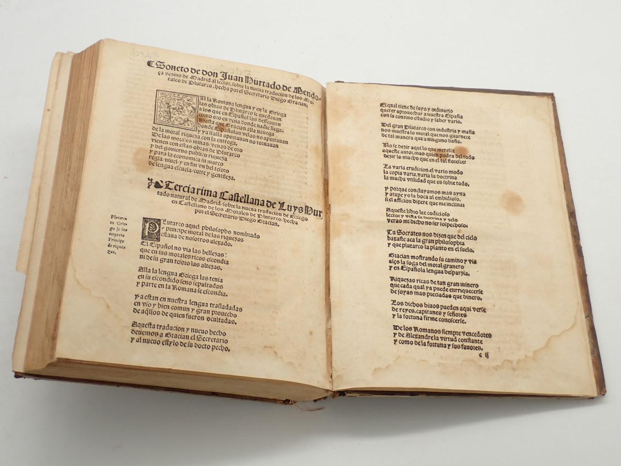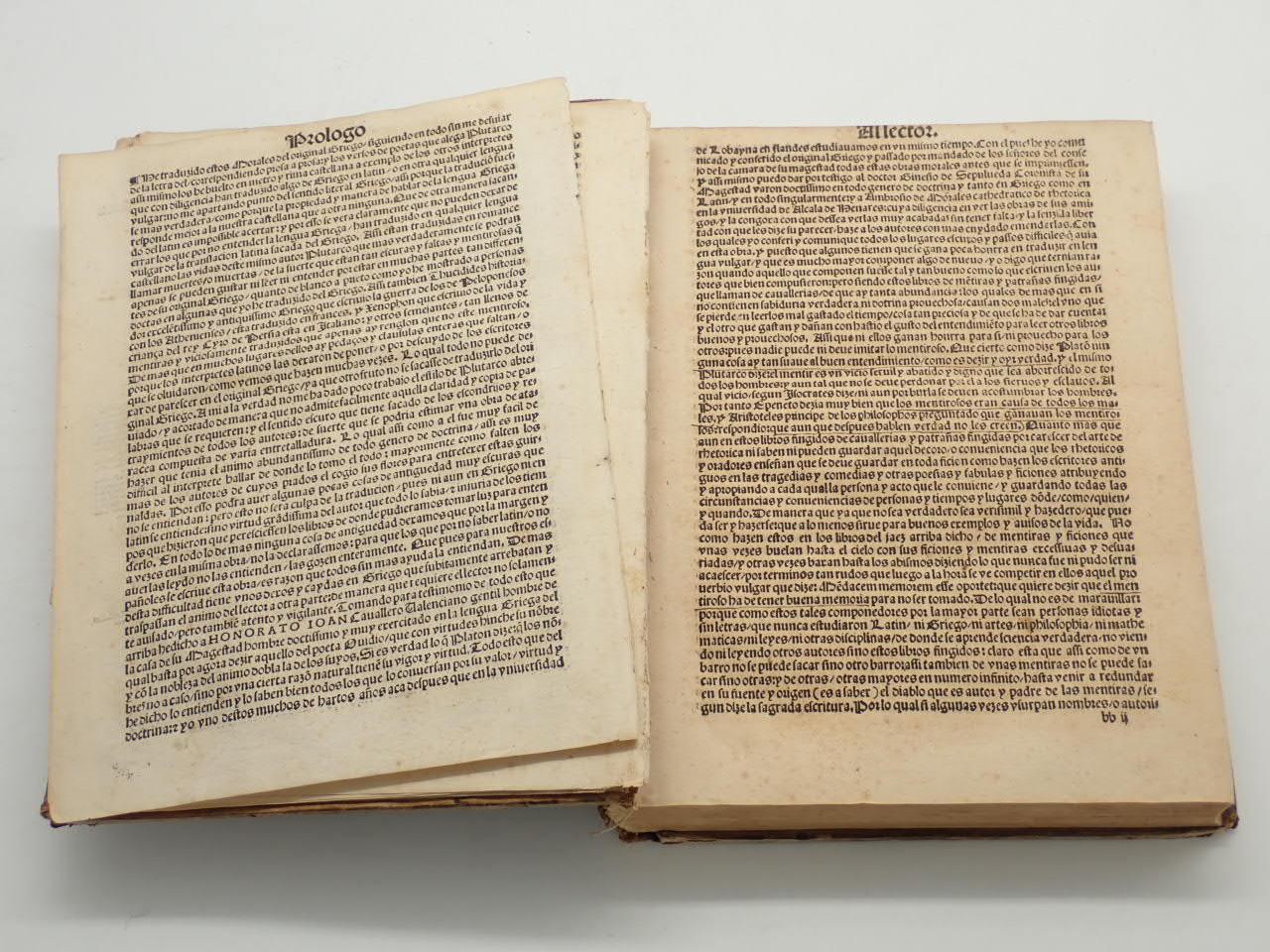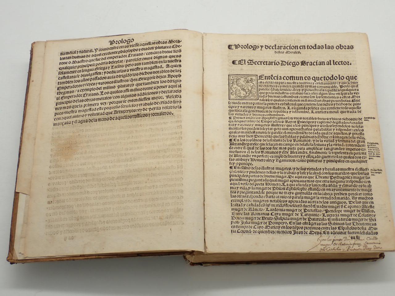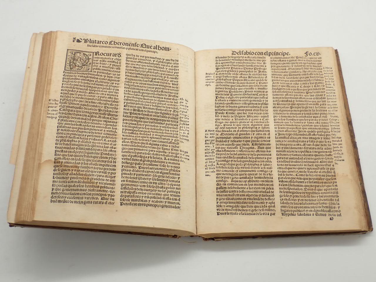 Morales de Plutarco. Traduzidos de lengua griega en castellana. Alcalá de Henares, Juan de Brocar, 1548 [EJEMPLAR FALTO DE 3 HOJAS]