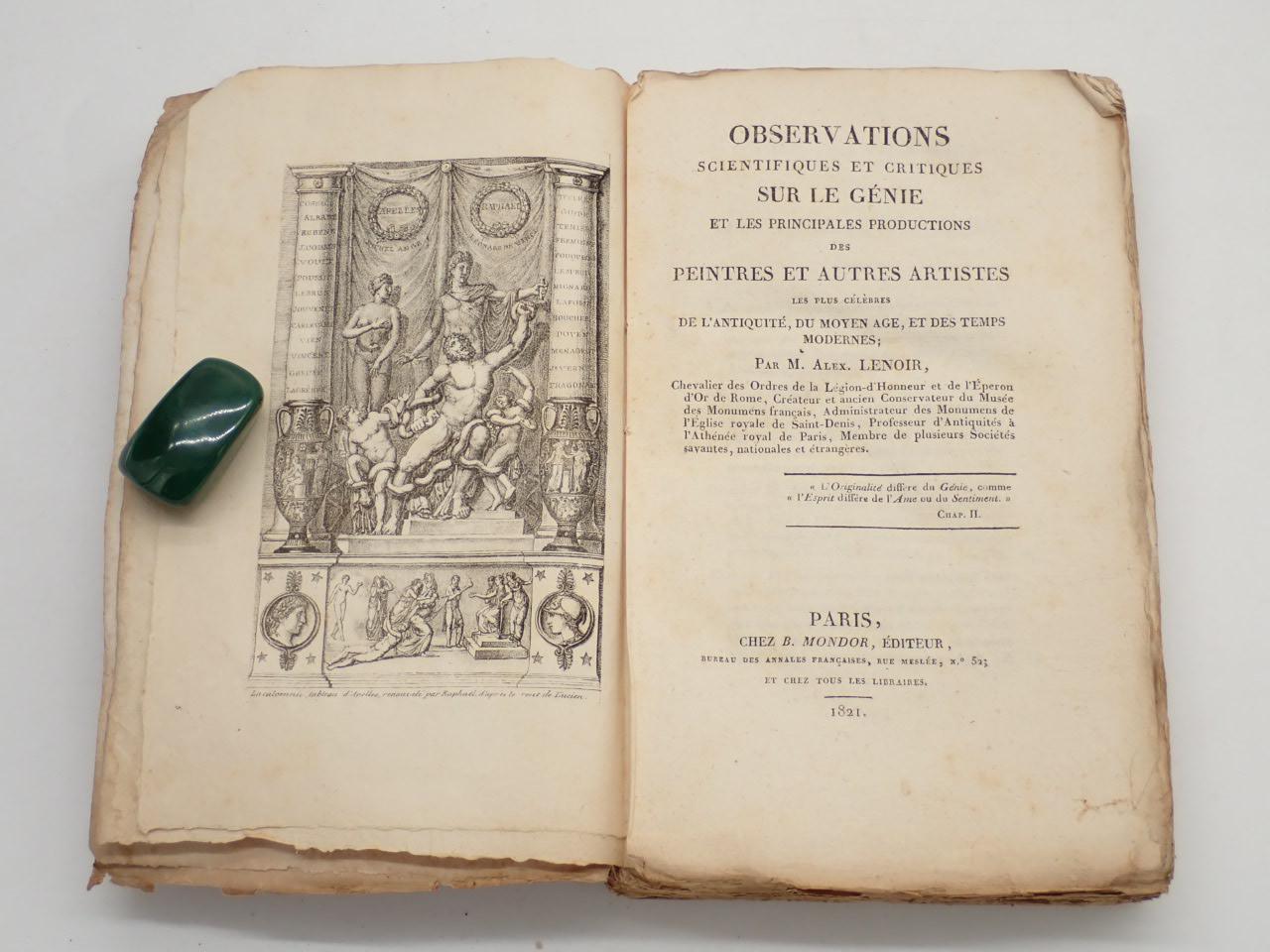Observations scientifiques et critiques sur le génie et les principales productions des peintres et autres artistes les plues célèbres de l'antiquité, du moyen age, et des temps modernes
