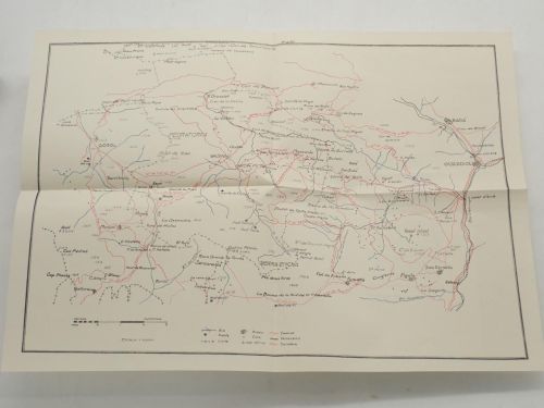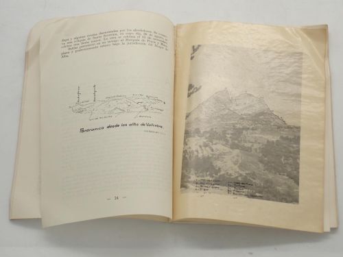 Fotografías b/n, mapa en color, gran mapa plegado suelto.