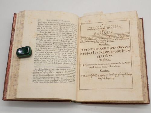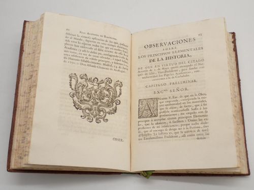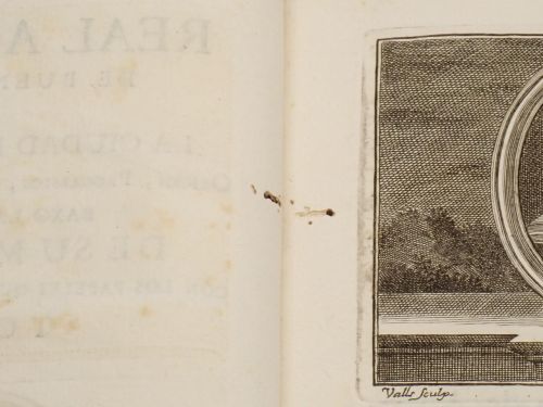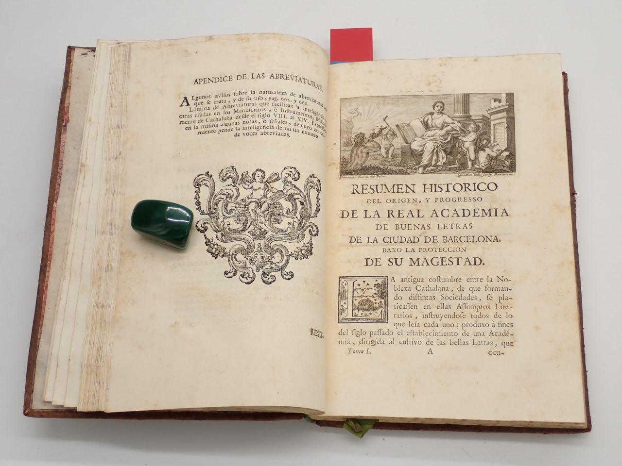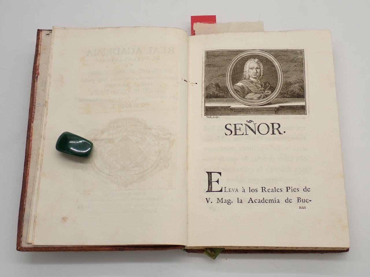 Varias viñetas calcográficas grabadas por Ignacio Valls: escudo de la Real Academia en portada, retrato de Fernando VI, encabezados. 2 láminas, una de ellas plegada y con rasgadura.