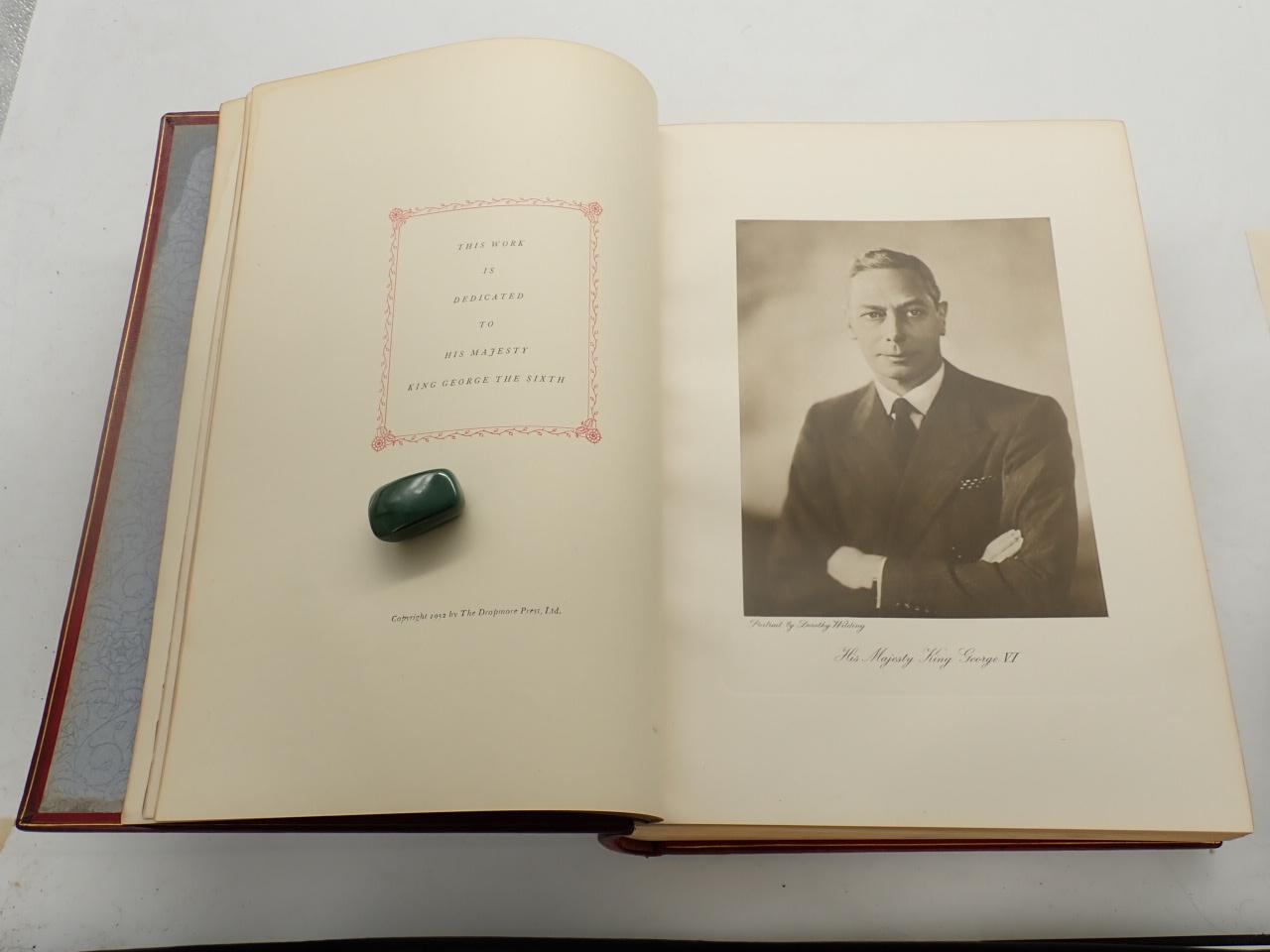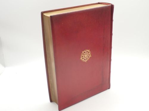 Folio mayor, paginaciones varias. Bonita encuadernación editorial en plena piel Burdeos, algo descolorida en algunas partes; nervios y hierros dorados en lomo, escudo real inglés dorado en plano anterior, corte superior dorado.
