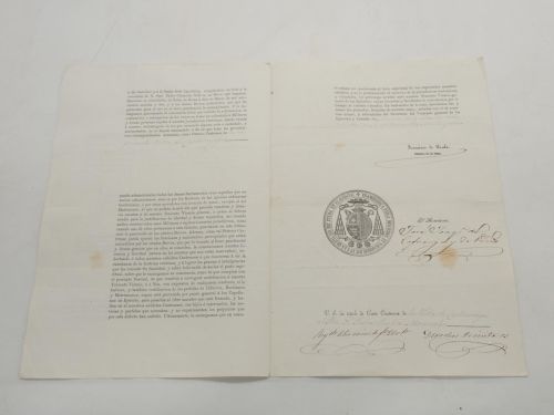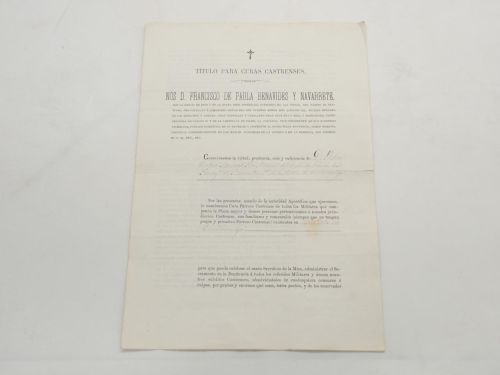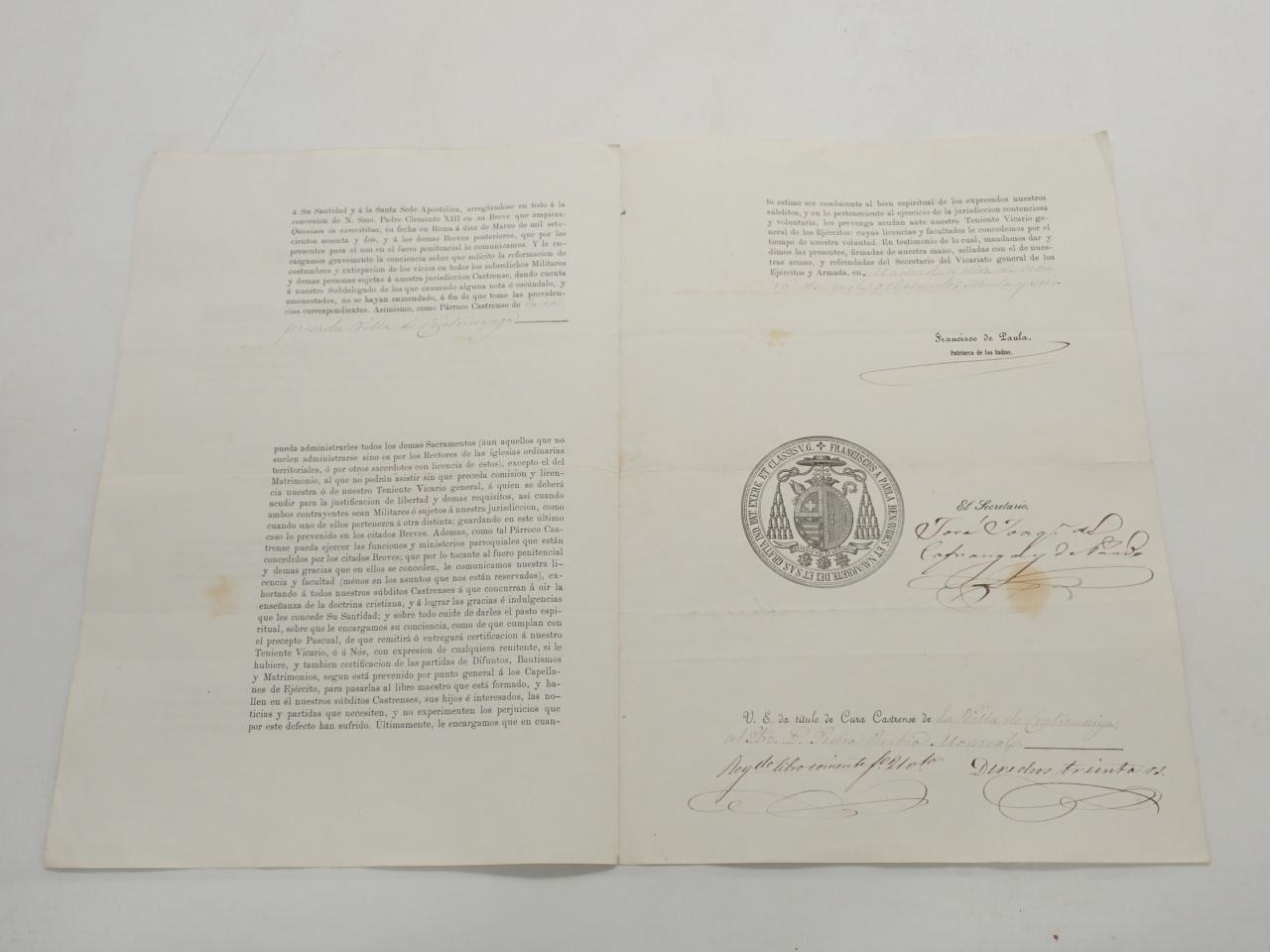 Formulario impreso rellenado a mano y firmado por Francisco de Paula y su secretario. Sello impreso.