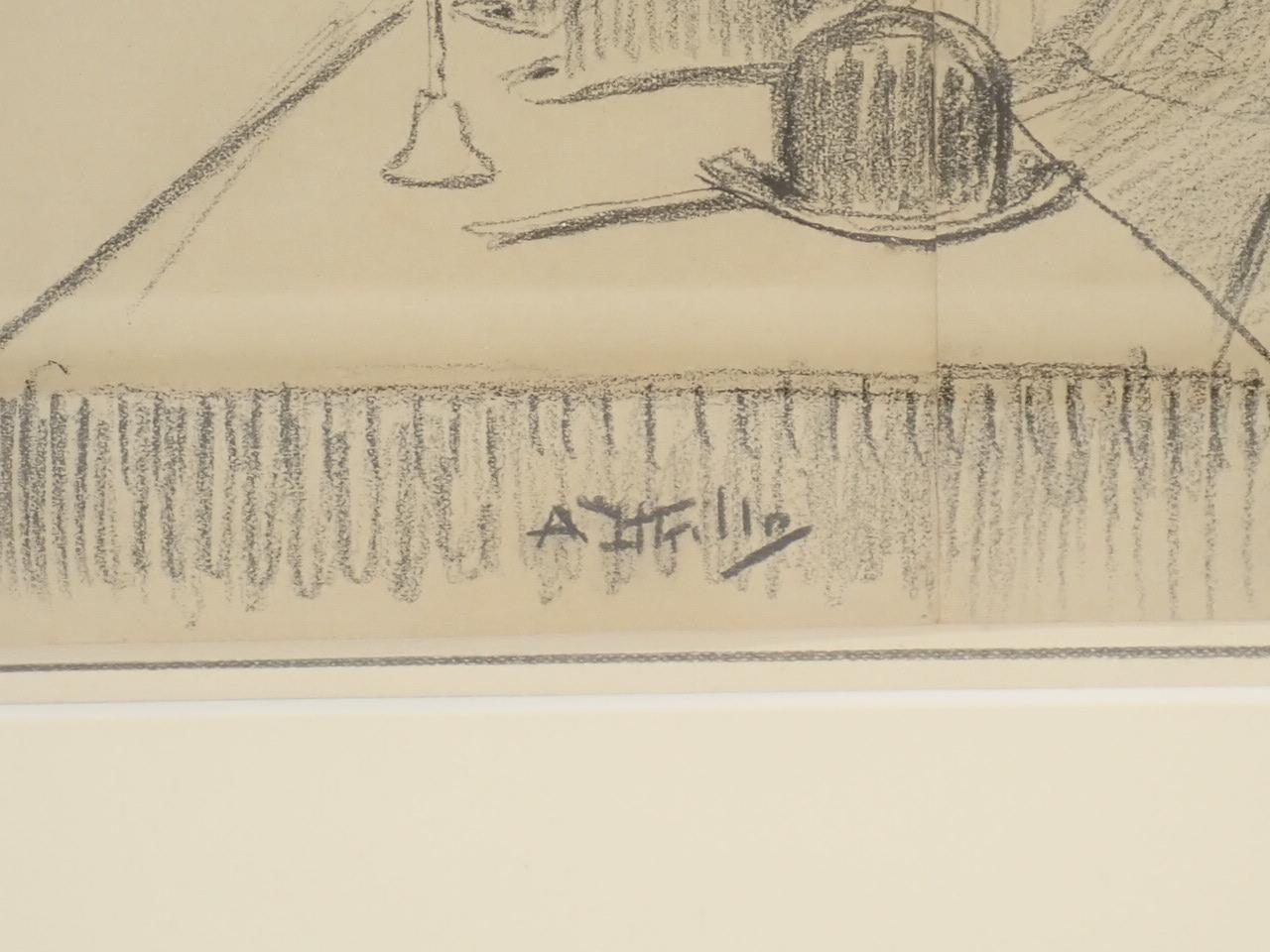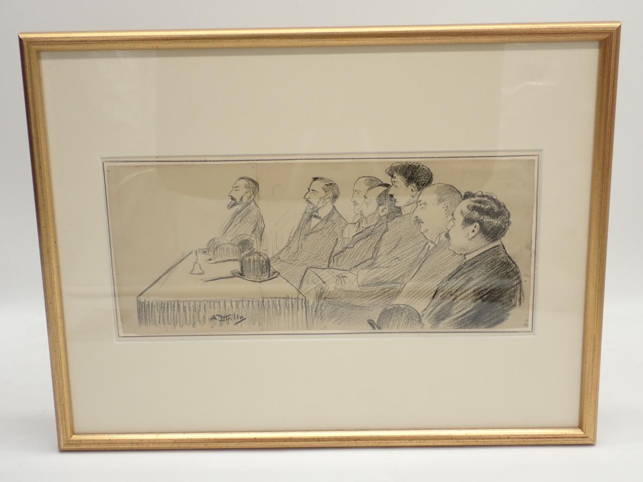 Varios personajes ante una mesa [DIBUJO ORIGINAL DE ANTONI UTRILLO]