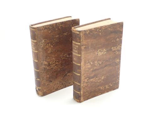 2 volúmenes en 8º mayor, pasta española rozada y con pérdidas, algunas galerías de xilófagos, planos algo alabeados.